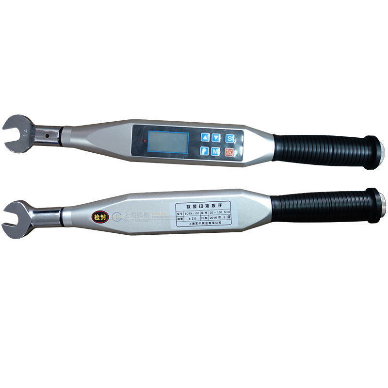 铸衡厂家生产销售的SGSX可换头开口扭力扳手运用科学的测量方法、先进的微电子技术、精密的加工工艺装配而成。本公司生产的这款SGSX可换头开口扭力扳手广泛适用于汽车、摩托车、机械制造等行业的螺栓紧固检测及控制,是保证和提高产品质量的必备工具。我司SGSX可换头开口扭力扳手具有三种测量单位切换(N.m、lbf.ft、lbf.in)、精度高、测量准确、性能稳定、耗电量低、操作简单等特点。